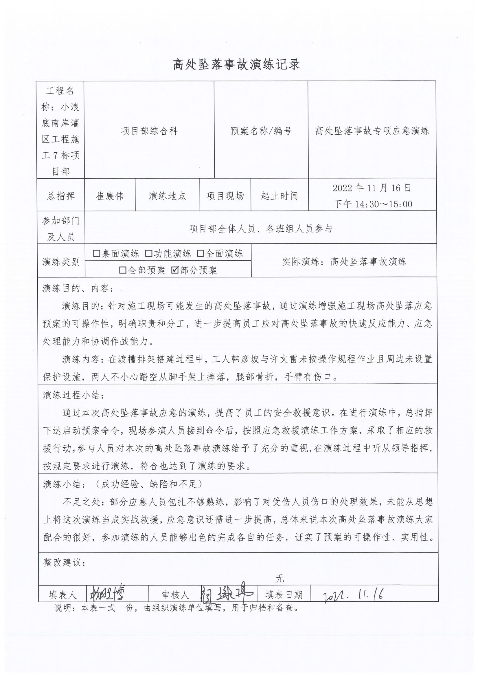 高墜事故應(yīng)急演練-7標(biāo)