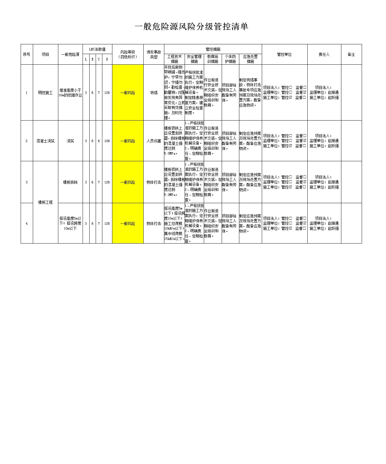 2024年一季度在建項(xiàng)目安全風(fēng)險(xiǎn)分級(jí)管控清單(小浪底南岸灌區(qū)工程施工7標(biāo))