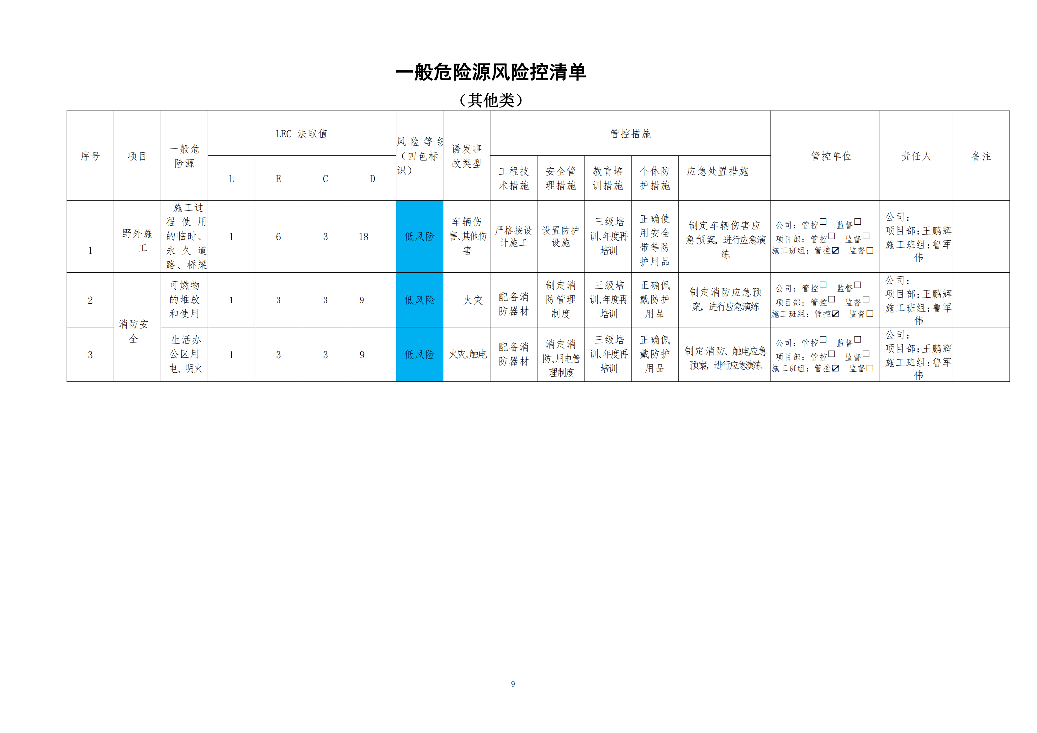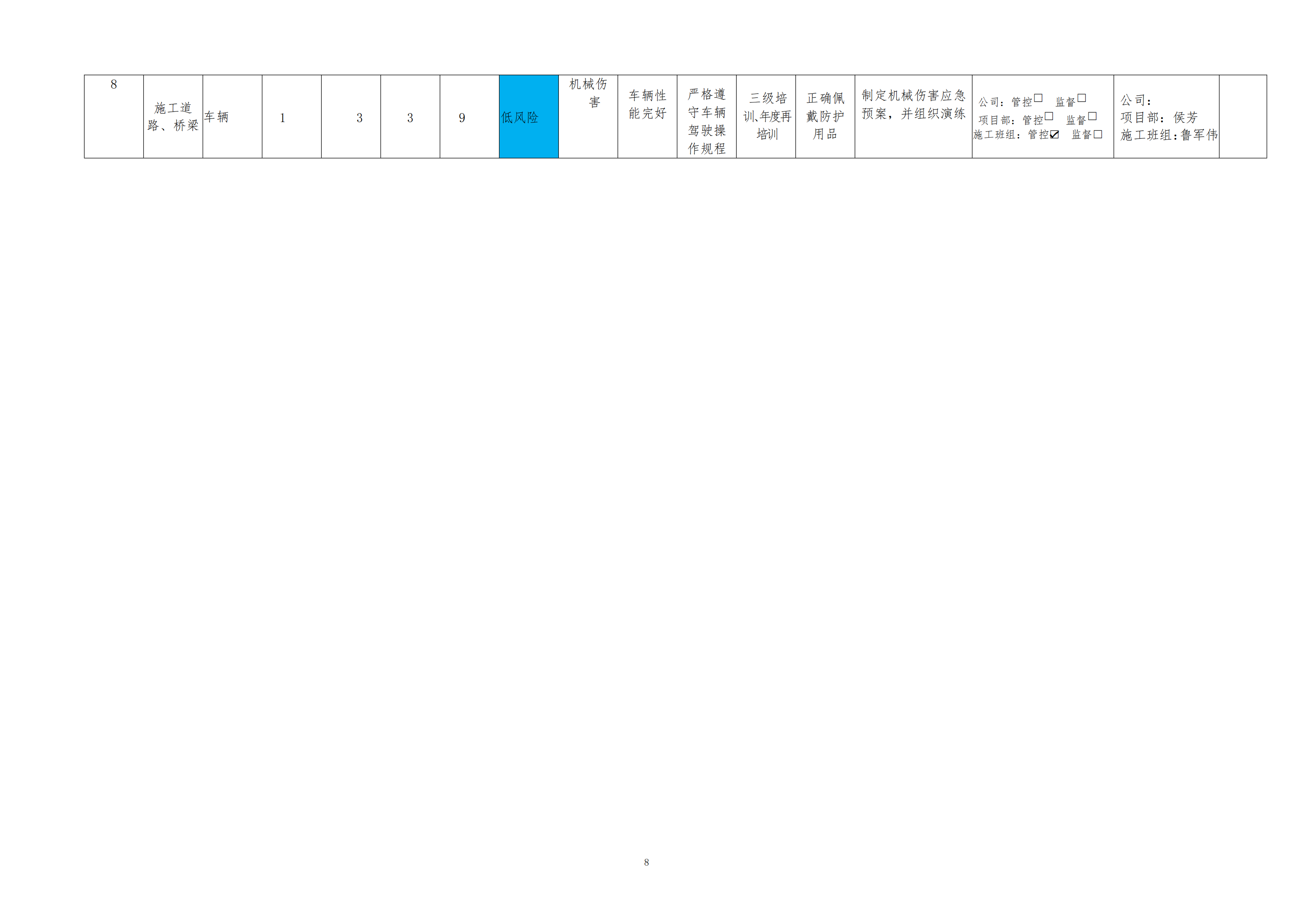 欒川縣新建水庫一期工程施工一標段危險源風險分級管控清單(5月)