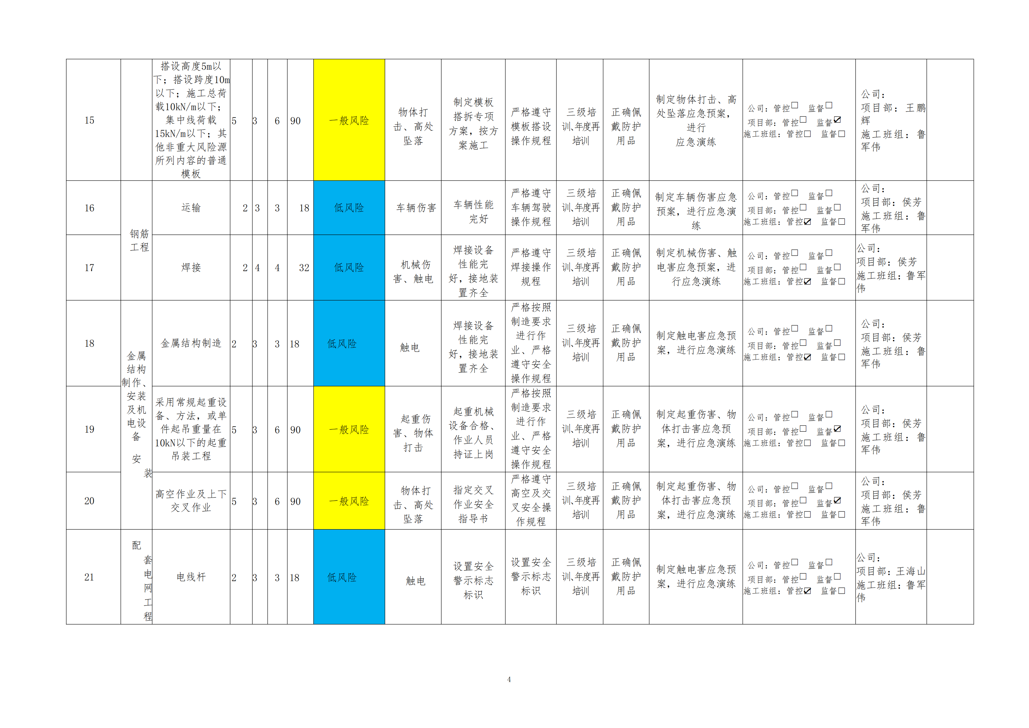 欒川縣新建水庫一期工程施工一標段危險源風險分級管控清單(6月)