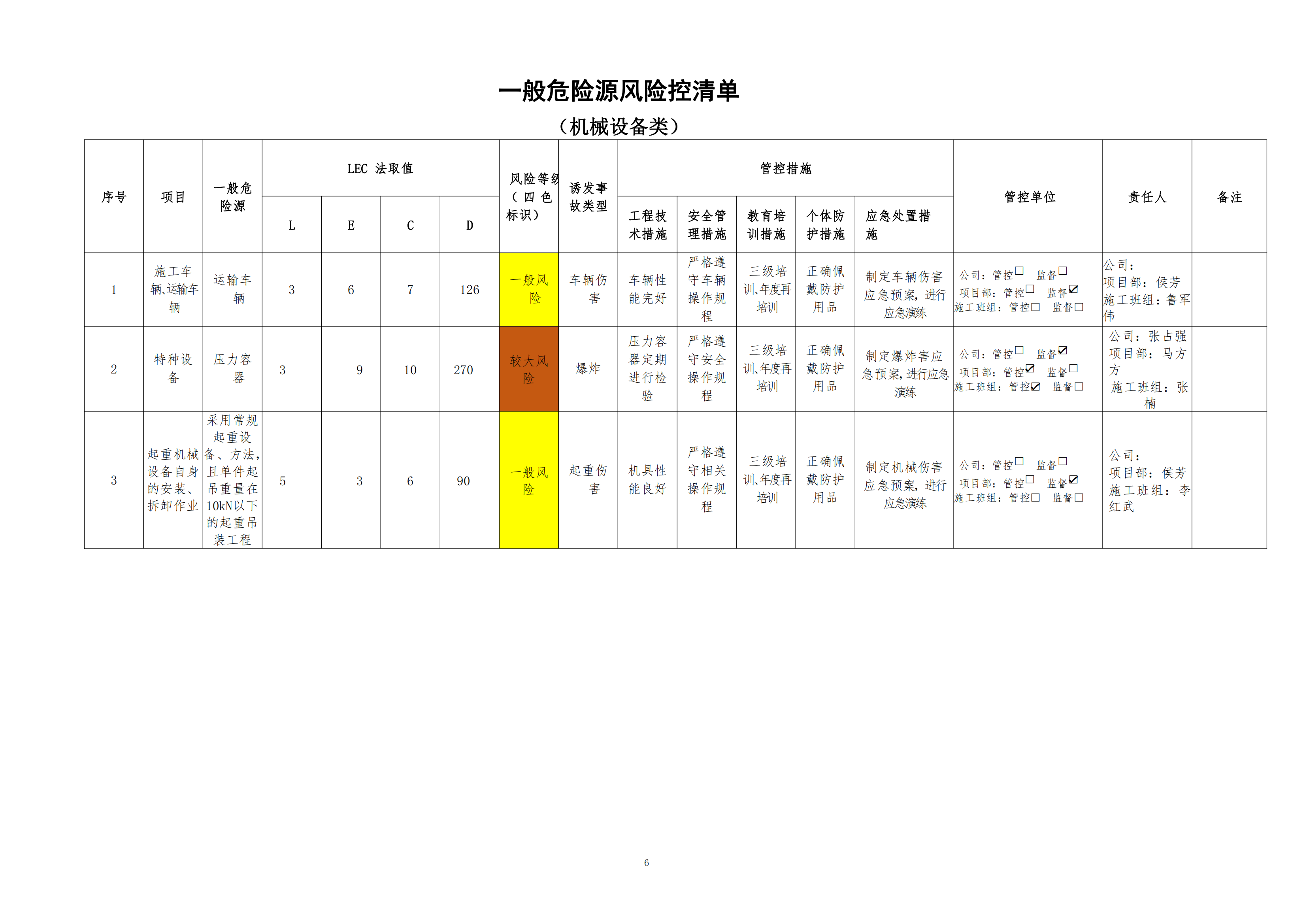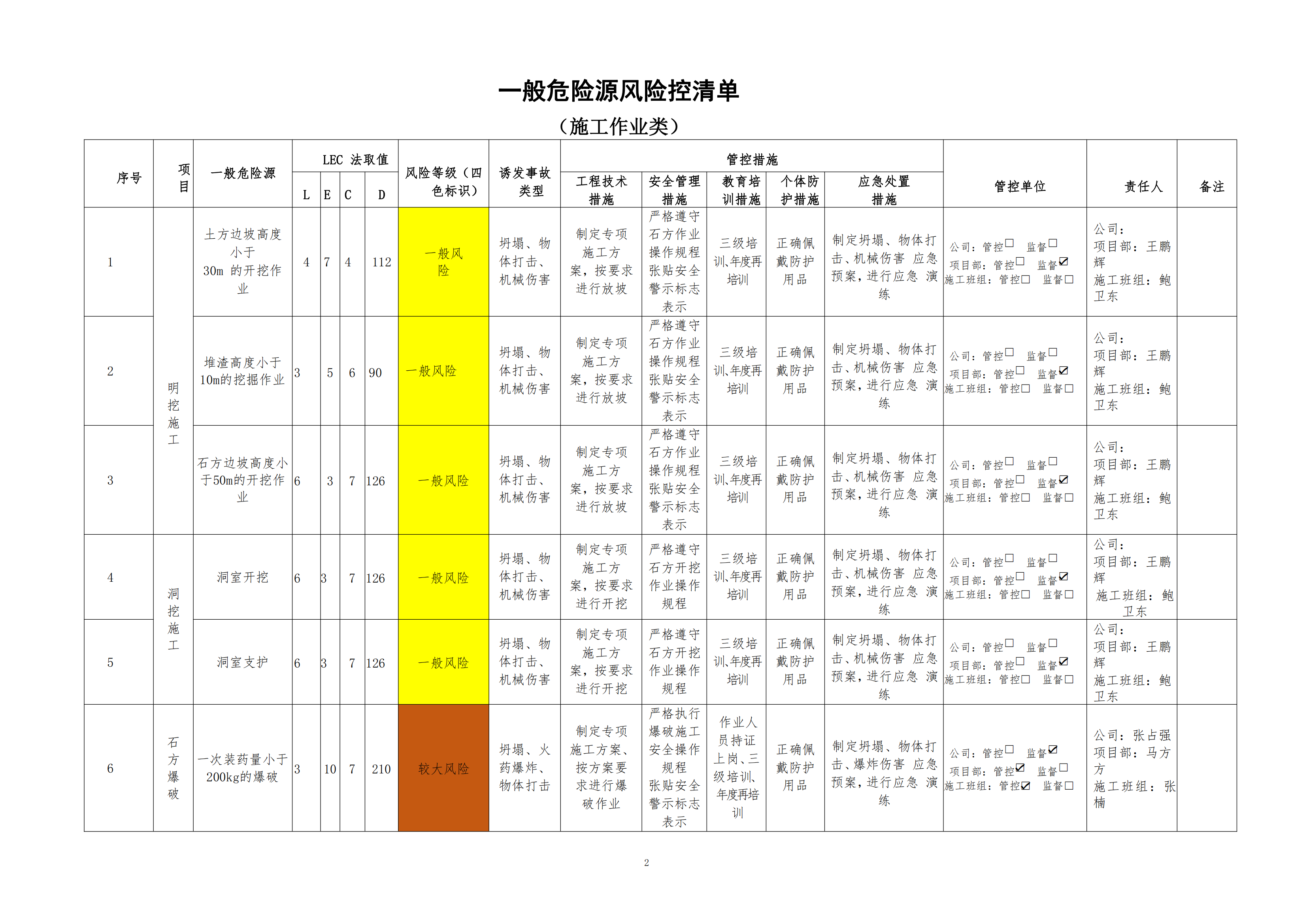 欒川縣新建水庫一期工程施工一標段危險源風險分級管控清單(8月)