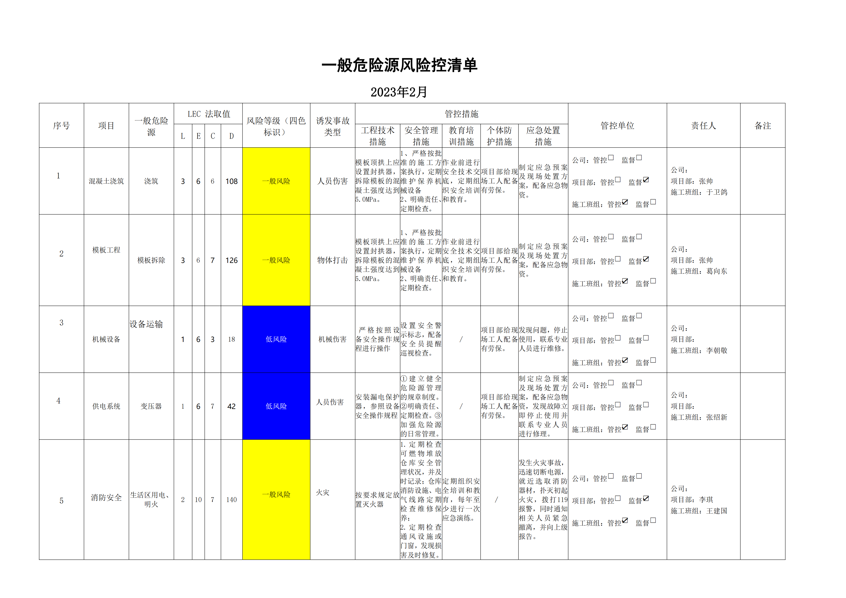 洛寧縣洛河生態(tài)治理三期危險源風險分級管控清單(2月)